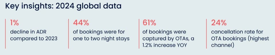 24% cancellation rate for OTA bookings (the highest of any channel): this is a big operational headache, to be honest. According to this, one in four bookings made through an OTA gets cancelled. Shocking.